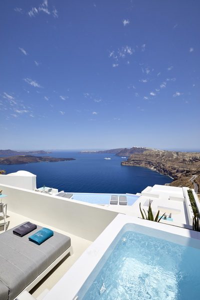 The five rooms that we renovated overlook the volcano, not far away from the port of the island. A light palette of materials was chosen with terrazzo floors. The existing rooms retain their orthogonal shapes and emphasis is given to the design of furniture, especially beds and lamps. A new bed was designed with its headboard made of leather straps. Two custom lights with circular shapes were also designed: one for the vanity desk features an orange plexiglas, as well as a circular mirror directly in front of it, sliding at various positions, from the full disclosure of the Plexiglas, till its total concealment. A second light fixture is vertical, extends from floor to ceiling and features two concentric drums -the inside of them either closes the vertical gap on the perimeter drum, or, by rotating on one side, reveals the whole width of the gap so that refracted light is maximized.
