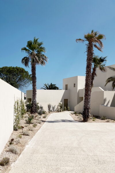Noūs, this new resort just outside Messaria, Santorini, member of Design HotelsTM, combines the new and the old. It is renovating the pre-existing hotel unit (Santorini Image) and expanding it adjacently with new buildings, reaching a total capacity of 121 rooms. The prior layout of functions was revised in favor of a new overall design that placed landscape as the primary element: with a stepped configuration at the entrance, with a linear gradation from flower beds to oleanders at the spa area, with introverted private gardens at the bungalows, landscape creates different atmospheres at each area.